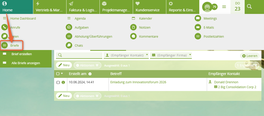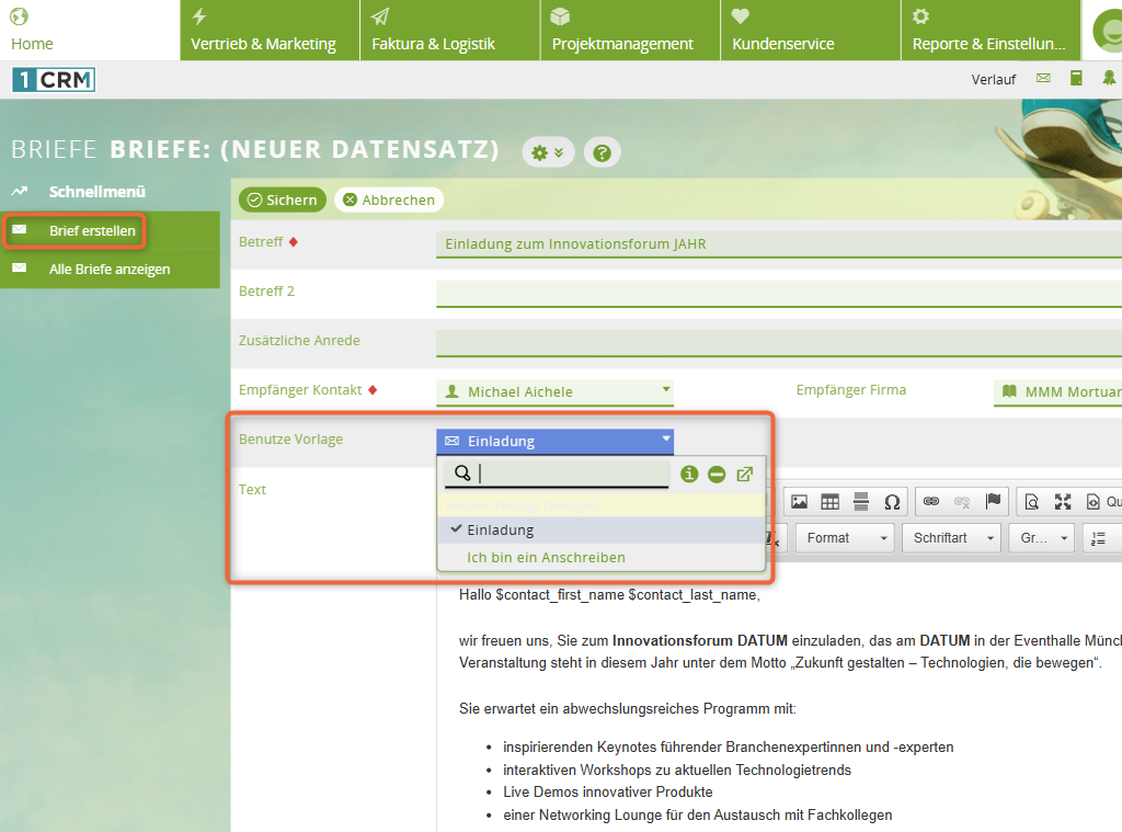 Nachdem Sie eine Textvorlage erstellt haben, können Sie nun einen Brief verfassen.
