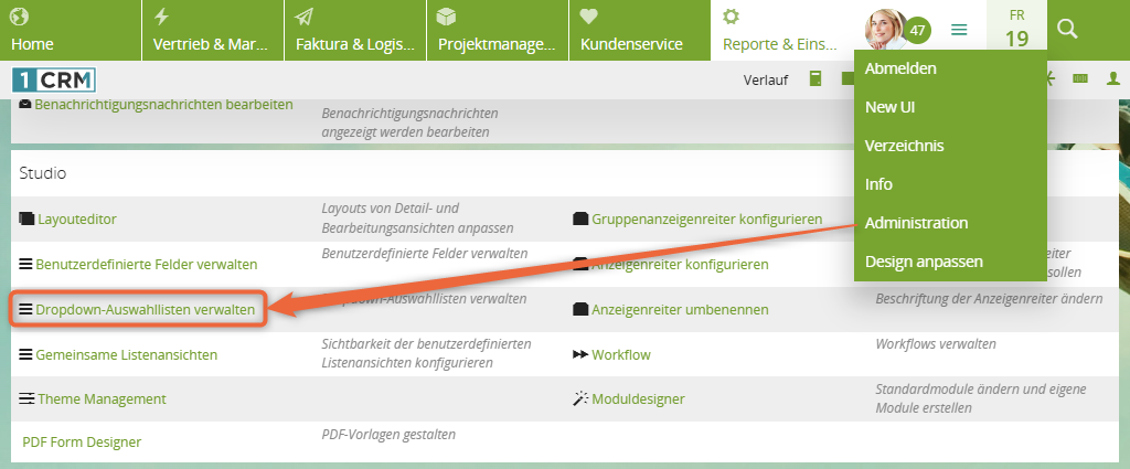 Mehr zum Umgang mit Dropdownlisten erfahren Sie in Dropdownlisten anpassen oder neue Dropdownlisten erstellen.