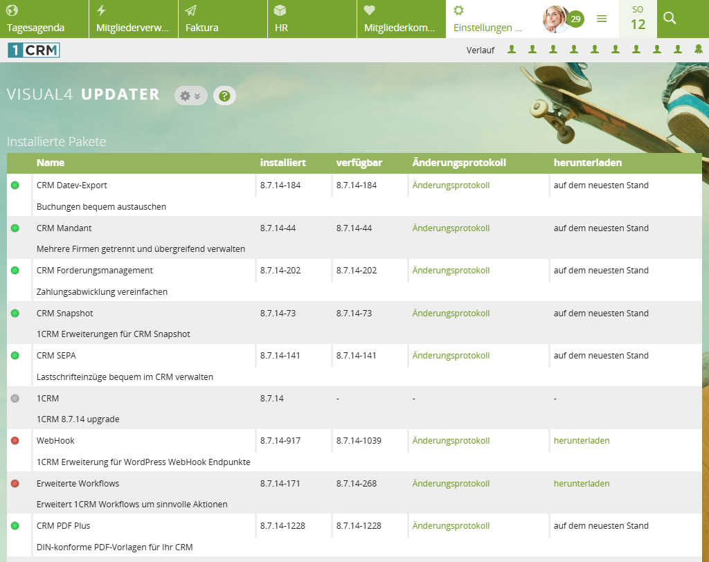 Wenn Sie noch keinen Zugriff auf den Update-Manager haben, können Sie das Produkt gern bei uns anfragen. Schicken Sie uns dafür einfach eine E-Mail an support@1crm.de.